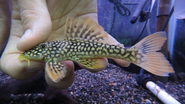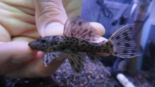 ペルーのアグアのベビーです。黄色いスポットがキレイな個体です。小さいですが、しっかり育てればちゃんと大きくなるプレコです!