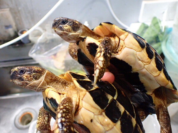ヒガシも入荷してます。低温に強くリクガメの中でも特に丈夫で飼いやすい種類なので初めてのリクガメ飼育にもオススメです。中段右、下段の画像です。