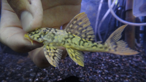 普通南米淡水カレイはペルーから来ますが、今回のコイツはなんとブラジルのネグロ河上流域のバルセロスから来た激レア産地の淡水カレイです!ペルーのはこげ茶色ですが、こいつはベージュっぽい薄茶色で、体型もペルーのよりも丸くなくて、よりひし形っぽい感じがします。かなり珍しい産地の淡水カレイです!次回はいつお目にかかれるかわかりませんよ!輸入された個体の中で1番大きい個体ですので、見応えありますよ!1匹のみ!