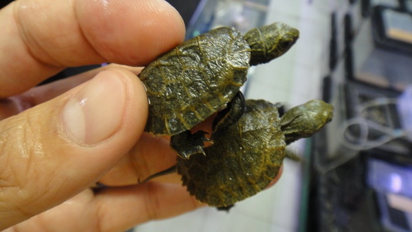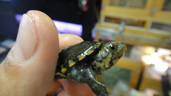 こっちもすごく小さいベビーです。まだハッチしたばかりの甲長3cm位のベビーです。小さいですがしっかりしていて餌食いも良好!もちろん完品で、尾も先までキレイですよ!