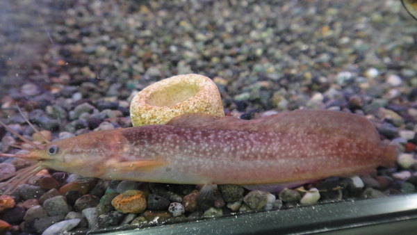 たぶんだいぶ前にも入荷したことがあったと思います。その時はヒメジカープのインボイスだった記憶があります。海水魚のヒメジ(オジサンの名前の方が有名だと思います。)に似たシルエットから適当に付けられた名前だと思います。今回のこのクラリバルブという名前の由来は分かりませんが、日本のニゴイとかに近い系統のコイだと思います。かなり久々の入荷で、とても珍しいです。滅多に入ってこない魚ですよ!