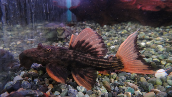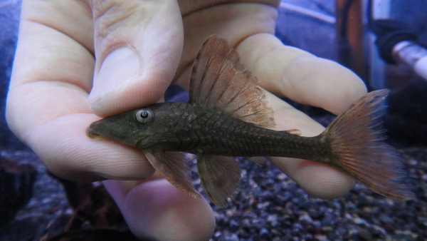 そういえば最近南米のマウスフィンキャット見かけませんねぇ。まぁ来ても別にそんな売れないだろうから来ても来なくてもいいんですけど・・・。今回入荷のは比較的よく見かけるアフリカのマウスフィンキャットです。南米産とアフリカ産でとっても良く似ていますが、全然違う魚です。大人しくて飼い易いナマズです!