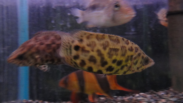 すごいの来ました!!これやばいです!過去にも30cmクラスのホシマダラが入荷したことはありましたが、35cmは当店に入荷した中では過去最大です!ホシマダラ自体入荷が少ないのに、こんなでかい個体は滅多に見られませんよ!もう幻レベルです!しかもありがたいことに今回はペアでの入荷なんです!ヒレの形状、総排泄腔の形状、発色から見て雄と雌なのはほぼ間違いないと思うのですが、一番の極め付けはこのサイズの個体が2匹で同じ水槽で仲良く泳いでるということです!通常カワアナゴ亜科の魚は幼魚でも同種や同系統の魚とは激しく争うことが多く、大型個体ではその性質がより顕著で、かなり激しく争うことがほとんどです。ですが今回の2匹は全く争うことなく、威嚇すらしません。こんな素晴らしいペアは次にいつお目にかかれるかわかりませんよ!2匹セットの値段なのでまぁまぁ高価ですが、マニアの方は是非ご検討ください!もししばらく売れ残ったらバラでの販売も検討しますが、とりあえず当面はペア売りのみのつもりです。ただし販売後もペアであり続けるということを保障することはできませんので悪しからず・・・。現状純淡水でストックしております!