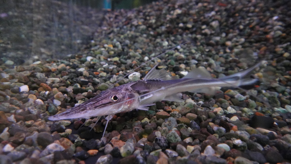 季節外れにペルー産キャットのベビーが入荷です!問屋さんにも今回1匹しか来なかったそうなので仕入れておきました!鼻が尖りチョウザメのような顔つきをしていることからスタージョンキャットと呼ばれます。鼻をぶつけていることが多いのですが、今回入荷の個体は鼻先が無傷のキレイな個体です!このサイズから広い水槽でしっかり泳がせて飼えばキレイに育てられると思いますよ!本来の入荷時期は12月~3月頃の冬から春先にかけてなので、この1匹を逃すとしばらく入荷は無いと思いますよ!