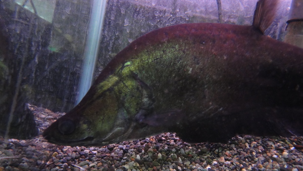 ワイルドの小さいのから飼い込まれた個体です。背中は黄色くなってますし、キレイで迫力もあります。下取り個体につき大特価です!混泳のため多少のヒレ欠けなどはありますがちゃんと治る程度です!本物のブラックコロソマのこんな大きい個体がこんな値段なんてすごくお買い得です!