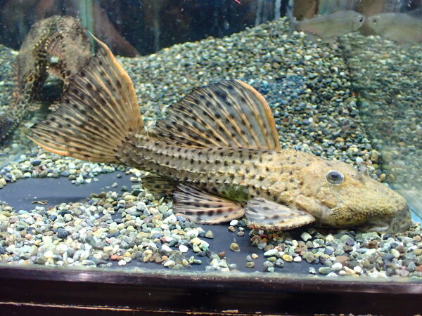トリムプレコの中ではちょっと地味目な種類ですが、成長すると太くがっしりした体型になって棘もすごく発達するかっこいい種類です。個体や産地によっては体色が黄色っぽい明るい黄土色になるやつとか尾ビレや背ビレの太い条がオレンジになるのとかけっこうバリエーションがあったりもします。ちなみに前からの在庫で20cmくらいで¥29800の個体も1匹いますので大きいの欲しい方はお問い合わせください。20cmでこの値段はかなりお買い得だと思います。右上が今回入荷した9cmの個体の画像で中段左が前から在庫してる20cmくらいの個体の画像です。
