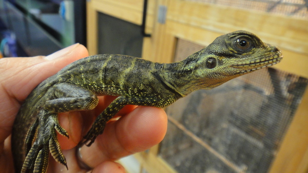 アダルトは青っぽい深緑で、さらにオスは背にクレストが立ち、ものすごくかっこいいトカゲになります!大きいサイズで輸入されるとバタバタするイメージが強いですが、ベビーから飼うとよく馴れるんです!餌も大型個体になるほど果物や野菜などを好んで食べるようになり、イグアナフードやアゴヒゲフードでの飼育も可能になります!かっこよくて、よく馴れて、しかも値段も手ごろ、最高ですね!