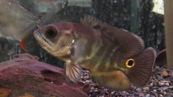 シングー川上流域の支流ジャトバ川産のオスカーです。種類はオルビクラトゥスだと思いますが、背ビレのあたりにオセラータスのような黒い模様の入ったちょっと変わったおもしろい個体です!右上の画像です。
