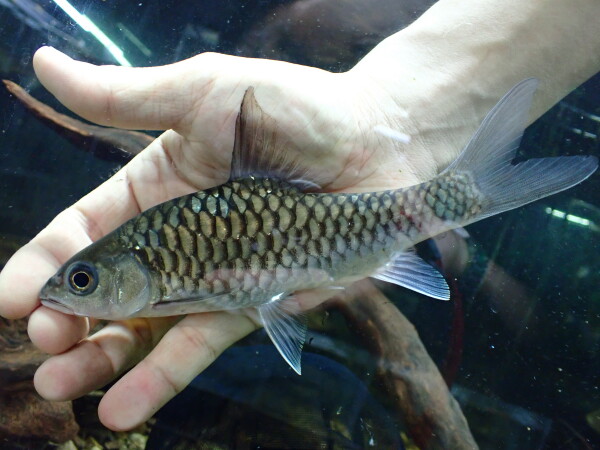 これも成長するとヒレが青くなるのでブルーフィンカープとかブルーフィンマハシールなんて呼ばれることもあって、タンブロイデスと混同されがちでややこしいんですが、タンブロイデスのブルーフィンカープとはまた別の魚です。これもキレイになるいい魚です!左下の画像です。