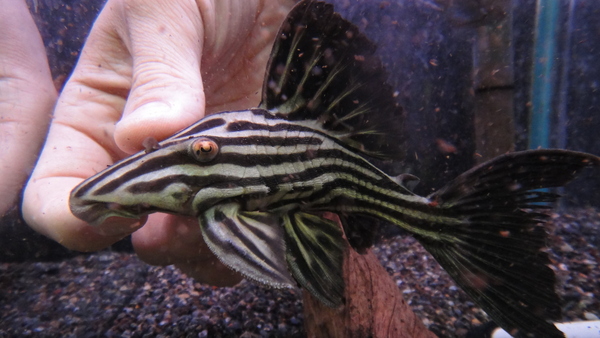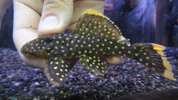 来ました!!最大のプレコ、アカリエスピーニョです!アカリはブラジル政府により輸出規制がかけられていますので流通量が激減してしまい今ではほとんど目にする機会が無くなってしまいました。本当に幻になりつつある激レアプレコです!頭部に生えた細かい棘が金色に光りすごくキレイです。もちろん入荷の個体も頭キンキンです!背ビレも高く、尾筒も太くしっかりしているのでそのシルエットもすごくかっこいいんです!ヒレに欠けている部分がありますが完治する程度です。マニアの方は必見です!次回入荷は全くの未定ですのでお早目に!!1匹のみです!