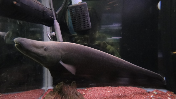 超激レア!!しっかり吻部の伸びた迫力個体です!雌雄の判別がつかないような小さいサイズのドルフィンナイフは今までにも少数ですが入荷したことがありましたが、ここまで立派な個体の入荷は初めてです!素晴らしいです!しばらく前に入荷して餌食いなどをチェックしながら様子を見ていましたが、餌食い良好で状態もバッチリです!このサイズで輸入された個体ですので少々の尾の先の欠損などはご了承ください。尾の先端が少し短い以外は欠点もなくキレイです!上段の画像です。