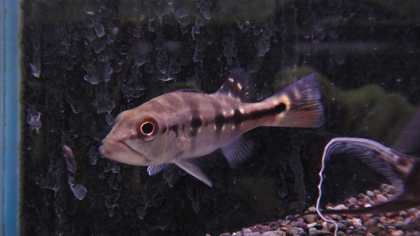 前々から気になっていた魚だったのですが、地味に高いので仕入れようか迷っていたのですが、個人的にも実物を見てみたかったので仕入れてみました。この魚良いですね!実物はかなりかっこいいです!体側の大きな黒い班も黒というか濃紺のような青味がかった黒で、臀ビレのレッドフックとのコントラストが超キレイです!マックスでどれくらいまで育つのかは分かりませんが、中型カラシンマニアの方には超オススメです!