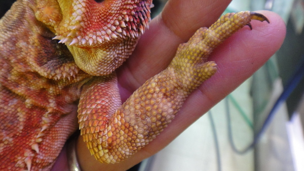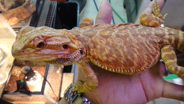 フトアゴヒゲトカゲ レッドレザーバック メス 指1本とび、少々尾切れあり 特価¥18000 上段、中段左の画像です。