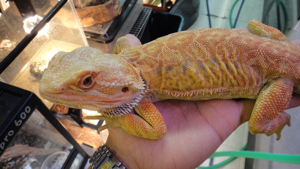 フトアゴヒゲトカゲ クリアネイルオレンジイエローレザーバック オス 特価¥25000 中段右、下段の画像です。