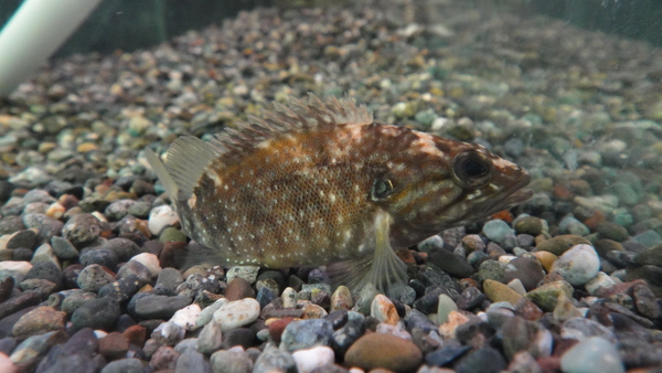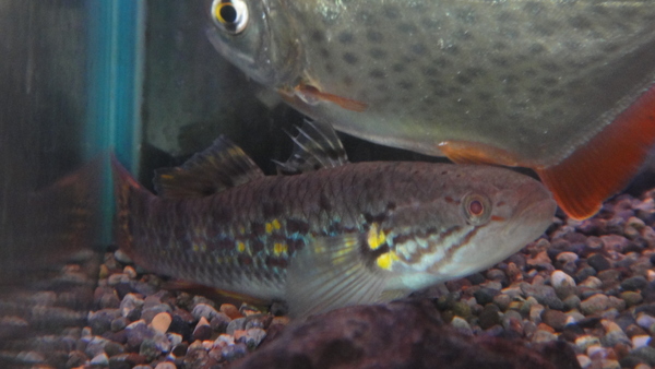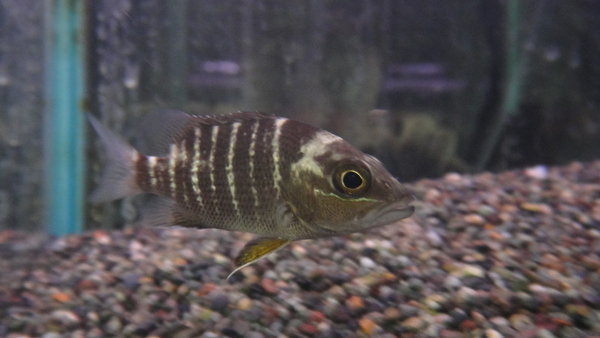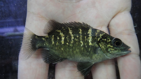 個人的に大好きな魚です!特定外来生物に指定されたために今ではもう飼育できないケツギョという魚がいますが、なんかそのケツギョっぽい雰囲気のある魚だと思います。最大で25cmほどになるフィッシュイーターで日本のオヤニラミをもっと精悍にした感じのかっこいい魚です。以前、非買にして店で育てて大きくしていた個体がいたのですが、それを死なせてしまったのでずっと探していたのですが、やっと入荷しました!また1匹そだてようっと!