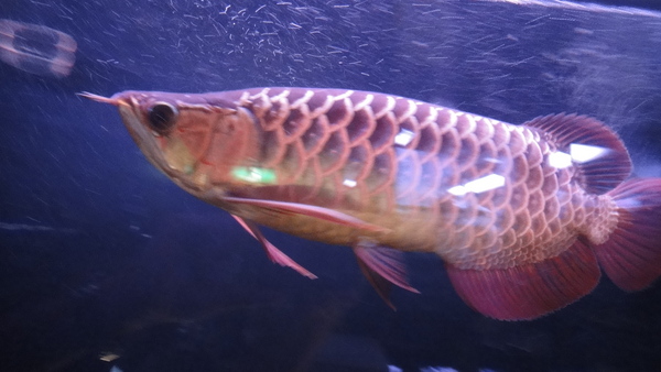スタイル抜群!!超極上のショート過背金の入荷です!まっすぐ伸びた長いヒゲ、反り返ったスプーンヘッド、ぐんと盛り上がった肩、厚い体高、長く大きい各ヒレ、ショートでありながら歪みや凹み、鱗の乱れなど一切ないパーフェクトな個体です!もちろん目垂れ、アゴずれ、エラ捲れのない完品です!過背金は神経質な個体が多い気がしますが、この個体は餌食いもよく物怖じしない性格なのでとても育てやすいと思います。あまりキレイな写真が撮れなかったのですが、実物は画像よりももっと青く、全然キレイでかっこいいです!当店の看板魚にしようと思い仕入れた個体なので正直あまり売りたくないのですが、ご興味のある方はお問い合わせください。この体型で大きく育ったら相当な迫力の超イカツイ過背金に育つと思います!!