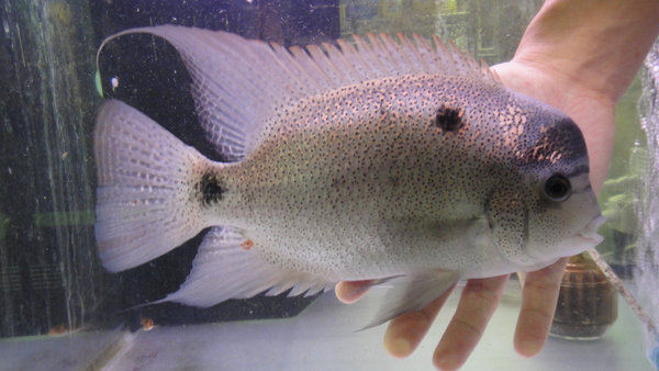 飼い込みのワイルドアルゲンティアです!幼魚から2年ほど飼い込まれた個体です!単独で大切に育てられた個体ですのでヒレもピンとした完品です!!おでこの張り出し具合から見てでたぶんオスです。ワイルドのシクラソマは超入手難ですし、この大きさで完品の個体はなかなか手に入らないですよ!