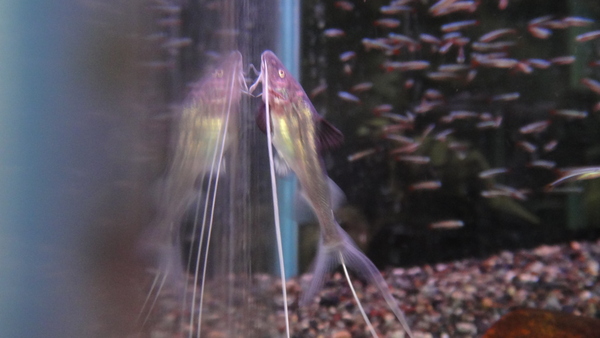 超激レア大型ナマズのピライーバが入荷です!入荷時は3,5cm位しかなくアカヒレも食べられないようなサイズだったのでしばらくトリートメントを兼ねて様子を見ていました。さすがはピライーバです!1週間ほどですくすく育ち、アカヒレもバクバク食べられるようになりましたので販売いたします!ベレン産やマラジョー産などアマゾン川河口産が有名ですが、本種はアマゾン川に広く分布するためペルーとブラジルの国境付近でも採集されることがあります。個体によっては上流産と下流産ではスポットの入り方に違いがある場合もありますが、大きくなってスポットが消えるころには区別がつかなくくなっていると思いますが・・・。今回入荷は1匹のみです!餌はお腹がパンパンになるまでアカヒレを食べていますので絶好調です!本当は大きく育ててから高く売りたかったんだけどなぁ・・・。画像がピンボケですいません・・・。