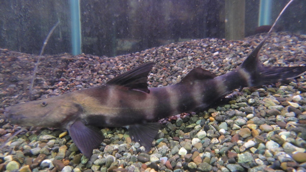 こんなナイフ初めて見ました!!超レアな謎のナイフが入荷です!ピンクドルフィンナイフのインボイスで入荷しましたが、ドルフィンナイフとは全然違う魚です。ダックビルナイフなど全身が淡いピンク色のナイフはいますが、今回入荷したこのピンクドルフィンは背部や頭などは青灰色で、腹部だけ濃いピンク色です。着色したんじゃないのかと疑いたくなりような強烈なピンクです!最大サイズなど詳細は不明ですが、ナイフマニアの方にはたまらない魚ではないでしょうか?11日(火)に入荷したのですが、もうメダカを食べています!状態も良く、よく太っています!顔も悪そうなふてぶてしい顔で、なんとも魅力的な魚ですね!入荷は1匹のみですのでお早目に!