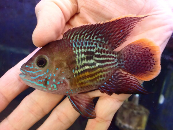 小さいのでまだオスかメスかは分かりませんが、オスは成長するとおでこが張り出してすごいカワイイ魚になります!ぜひ小さいのから育ててだんだんおでこが出てくるのを観察しながら育ててみて下さい!中段左の画像です。