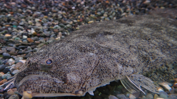 こんなに大きい淡水ヒラメは初めて見ました!!今まで入荷した中でも15cm位のが最大でしたが今回はかるく20cmを超えています!もう少し育ったら食べられそうです!?淡水ヒラメは淡水カレイに比べてよく動き、餌も積極的に追いかけて食べるので見ていて飽きないし、飼育していて楽しいです!ただし飼育には塩分が必要で汽水で飼育しましょう。