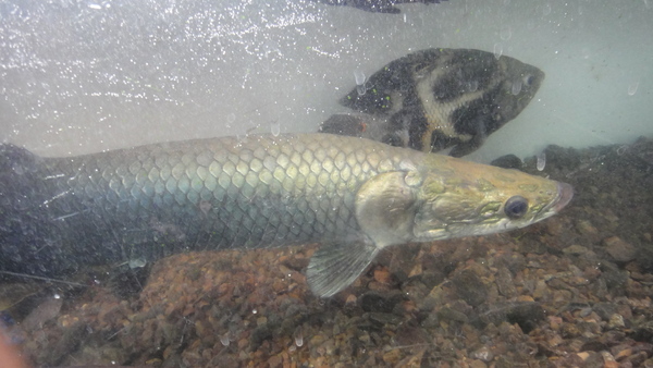 ペルー産として入荷したベビーから1年ほど飼い込んだ個体です。赤い発色は尾ビレや背ビレの一部に少しある程度ですが、飼い込んで歳をとれば自然に赤くなっていきます。餌もなんでも食べますし、太さもありかっこいいです!メタリックなグリーンがキレイな個体です。大きくなる魚ですのでしっかり飼える方にお願いします。小さいのから育ててこのサイズになるころには餌代もばかになりませんから、このサイズでこの値段はお得です!混泳用に大きめの個体を探してるという方にはかなりオススメです!