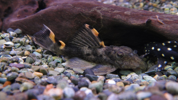 ヒレに入るオレンジのマークが特徴のキレイな人気のプレコです!丈夫で飼育は簡単です。