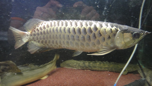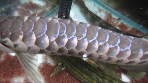 飼い込みの鑚石背鱗の過背金龍です!!6列目まで完璧に光っていますので鑚石背鱗が際立ちとてもキレイです!!ただ残念なことにアゴずれとエラ捲れがあります。エラは切っておきましたのでキレイに再生してくれるとは思いますが保証はできませんので、もしキレイに再生しなかった場合は自分で切れるという方か、捲れてても気にならないという方にオススメです。混泳にもいいかもしれませんね!背中までしっかり巻いていますのでとっても良い個体です!!画像は全て同一個体です。エラの切除の際に麻酔をかけたので眠っているすきに写真を撮りましたが、かなり鱗底の青い個体なので、水中ライトを当ててもらえれば真っ青に光ると思います!!
