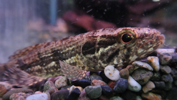 ちょっと大きめでしっかりした淡水カレイです!このサイズならもう赤虫は卒業で、メダカもいけますね!