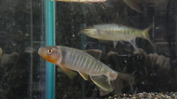 Opsariichthys evolans です。台湾産のオイカワの1種です。このへんの魚はあまり詳しくないのですが、しばらく前まではザッコ属に含まれていましたが、属名が変わったらしいです。最大20cmとのことですが、10cm位でオスはオイボシが出て婚姻色バリバリですから、大きさはこんなもんなんでしょう。かなりキレイで、日本のオイカワよりも丸みのある体型と顔つきがかわいいです!右上の画像