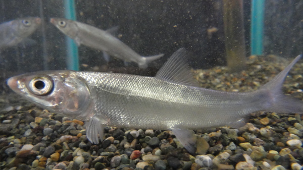 Hemiculter leucisculus です。台湾カワイワシの別名のある、イワシみたい?な魚です。イワシに似てるかどうかは置いておいて、ビカビカの鱗とスレンダーな体型、顔つきがかなりかっこいいです!最大で30cm位になるそうです。中段左の画像
