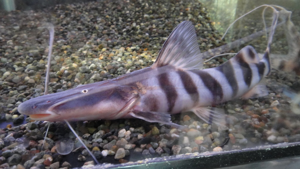 現地からのインボイスは台湾ヒレナマズでしたが、とんでもないです。ヒレナマズはこんなに大きくなりませんし、模様もありませんから・・・。おそらくアフリカンクララ(ガリエピヌス種)とバトラクス種か何かのハイブリッドクララだと思います。現地では食用に養殖されていた個体が逃げ出し帰化してしまっていますから、台湾産のワイルドクララでしょう。まぁヒレナマズではありませんでしたが、なにはともあれ、この魚、これはこれでかなりおもしろいクララです。でかいし顔も扁平でかっこいいし、模様もキレイ!意外といいですよ、こいつは!クラリアスマニアの方いかがですか??