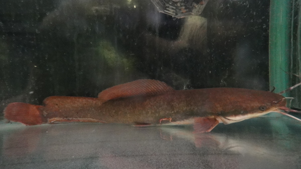 かなり赤味の強いキレイな色の個体で、珍しいタイプのヘテロブランクスだと思います!ヘテロブランクス属は数種が記載されていますが同定の難しいグループなので正確な種は分かりませんが、入荷の少ない珍しい魚でどれも大きくなるナマズです!クララに似ていますが背ビレの形状が特徴的でクララとは容易に区別がつきます。この魚もなかなかこういう大きいサイズでは入荷がありませんのでオススメです!ちょっとヒレの先が欠損しているようなので完全に再生したら40cmくらいにはなるかもしれません!?
