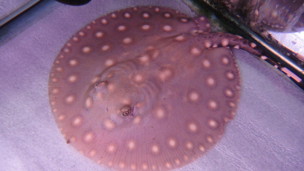 まだそんなに大きくなにので体色は灰色ですが、成長に従い黒くなっていきます。スポットもキレイで体盤の縁にも細かいスポットがしっかり入り、背中のスポットは今後フラワースポットになりそうです!まだまだスポットも増えてどんどんキレイになっていくと思います!メスでこんなにキレイな個体はあまりいませんので超オススメ!!餌はキョーリンのキャットに餌付いていますので飼育も楽です!体盤の縁に少し齧られた痕がありますがしばらくでもとどおりに治りますので心配はいりません!3つの画像は全て同一個体です。
