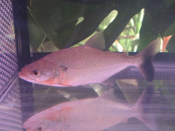 2月19日に入荷したレッドギルエロンガータピラニアですが、お買い上げいただいたお客様から画像を送っていただけましたのでアップしておきます。水槽導入直後で色がとんでしまっていますが、それでも頬や腹部にオレンジの発色がはっきりと確認できます。19日の入荷情報にアップしたエロンガータピラニアは画像の個体と同じインボイスで同時に輸入された個体ですので、もしかしたら赤くなるかもしれませんね??