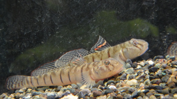 見た目はギアナゴビーにそっくりです。トカンンチンス産のギアナゴビーってことなのかな??普通のギアナゴビーよりはバンドの色が紫色っぽくてより鮮やかでキレイな感じがします。珍しいタイプのハゼですね!!左下の画像です。
