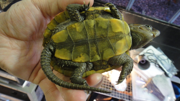 甲ズレ、尾切れ、爪とびのない完品のチュウゴクオオアタマガメです!入荷が激減で入手の難しくなったオオアタマガメで、しかも完品です!!次の入荷はいつになるのか全くわかりませんので、お探しだった方はお早めに!!状態抜群、人工飼料に餌付けてありますので安心です!!