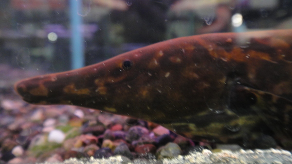 これも大きめで入荷しましたが、まだまだ大きくなる種類です。過去に60~70cm位で輸入された個体を見たことがありますが、ちょっと気持ち悪くてあまりのデカさにびっくりしました。これも南米産ナイフの中では飼育のしやすい種類で、餌は冷凍赤虫でOKです!