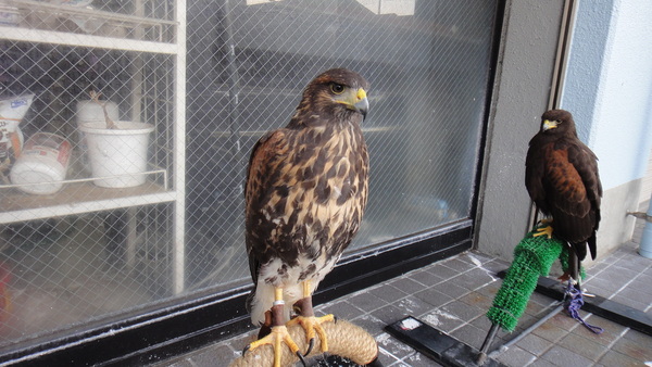 去年生まれの若のメスです。若なので羽の色や模様がとってもキレイです。調教はまだしていませんが人馴れはよく大人しい個体です。訓練の良く入る頭の良い種類なのでフリーフライト(紐などで繋いだ状態ではなく、自由に飛ばして呼べば手元に戻ってくる状態)ぐらいはすぐにできるようになります!飼育方法や調教方法についてはお教え致しますので初めての方でもご安心ください。ペットとしてもとても優秀な鳥で、手乗りインコやオウム位か、それ以上に良く馴れます。さらに仕込めば鷹狩もできますので、ご興味のある方にはご購入後にハンティングバードとしての調教についてもお教え致します。私もハリスホークをペットで飼育しており、毎年シーズンになると鷹狩を楽しんでおります。
