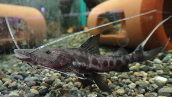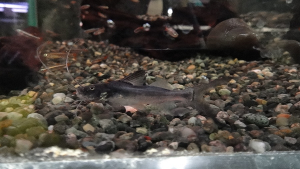 幼魚の頃はうちわみたいな大きな胸ビレが特徴のナマズで、大きくなるとタイガーシャベルを平たく伸ばしたような顔のナマズになります!!これも時期ものですよ!