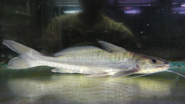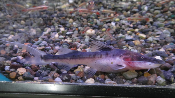 ものすごい久しぶりの入荷です!もう来ないんじゃないかと思っていました。太くヒダ状のヒゲが特徴のナマズで、餌付きも良くすぐに人工飼料を食べるようになります。よく泳ぐナマズで、青みがかった銀色の体色がすごくキレイです!丈夫で飼育も簡単だし、見た目もかっこよくて本当に素晴らしいナマズです!次回の入荷は全くの未定ですし、今回の入荷も1匹のみです。探していたという方も多いのでは??