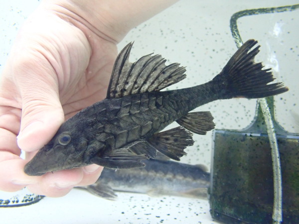 大きめのアーマードプレコ来ました!コケも良く食べてくれるしオススメです。今回結構大きめで来たので見応えありますよ!ただこのサイズで輸入されてるので多少のヒレの傷みはありますが飼い込んれるうちにキレイになりますのでご了承ください。中段左の画像です。