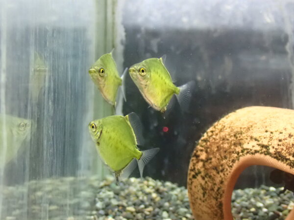これも久しぶりですね。メタリックグリーンの幼魚色がとてもキレイです!成長につれて緑色の発色は薄れてしまいますが、成熟したオスはヒレや体側が真っ赤に発色したりします。そういう個体は本当にキレイなんですが、全てのオスがそういう発色をするわけではないのが悩ましいところ・・・。中段右の画像です。