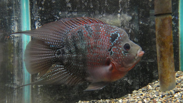 丸くてかわいいショートボディのフラワーホーンです!大き目でしっかりしたサイズでコブも少しでています!普通のフラワーホーンに比べると格段に大人しい個体が多いので上手に組み合わせれば混泳も可能です!