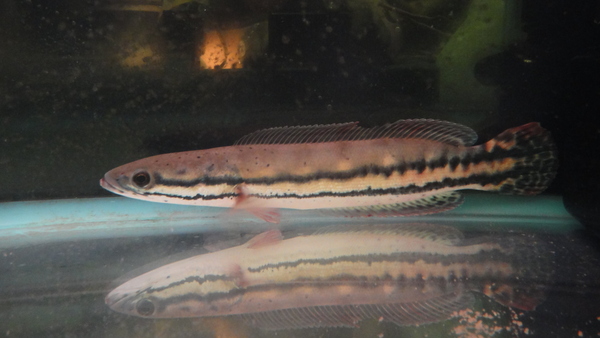 大きい迫力サイズのエンペラーです!この大きさだとシャンパンゴールドのような淡い色にうっすら水色がかったような感じでものすごくキレイです!スネークヘッドなので多少気の強いところはありますがそれでもコブラとかプラーチョンとかに比べれば全然混泳させやすいですよ!