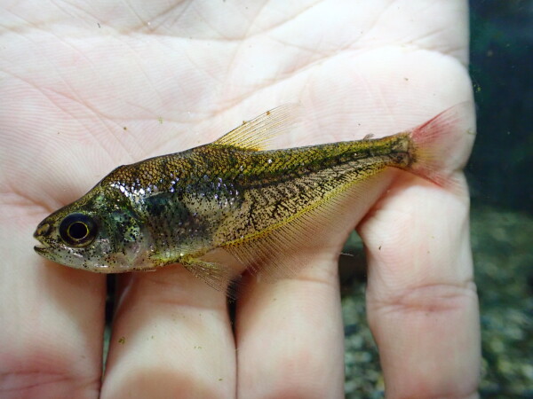 Charax stenopterusです。ブラジル南部のサンタカタリーナ産のカラックス。まだ小さいですが既に尾ビレは赤く、臀ビレは黄色く発色しています。学名で画像検索してみてください。体高の出たかっこいい成魚の画像が出てくると思います。ぜひ大きく育てあげてください!中段左の画像です。