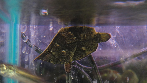 葉っぱに擬態した変な魚です。確か、昔はヨツメウオ、ブラインドケーブカラシン、それとこのリーフフィッシュで世界3大珍魚と呼ばれていたと思いましたが、今ではあまりそういう風に言わなくなりましたね・・・。葉っぱのふりをして小魚に近づき一気に飲み込むという、このことだけ聞くと恐ろしい魚ですが、性質は大人しくけっこうかわいい魚です!