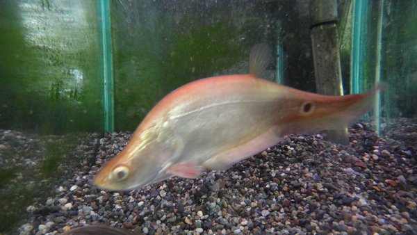 尾が赤い大きくなるコイの仲間ですが、見た目はコイというよりボラですね・・・。安い魚ですが、大きくなると迫力もでますし、性格は大人しいので大型魚との混泳にもいいと思います!