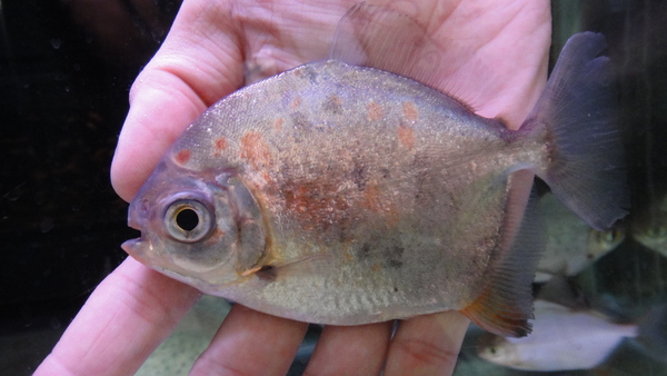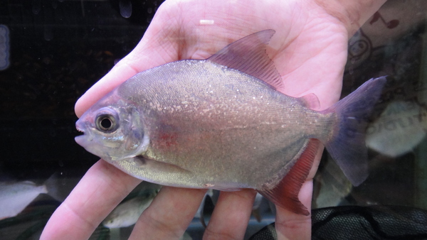 なんかよく分かりませんが、謎のピラニアのベビーが入荷しました。ひし形でハイボディの体型が特徴的で、尾ビレのエッジには黒い色は出ていませんのでブラックピラニアではないようです。輸入元の社長は初入荷ではないかと言っていましたが、育ててみないとどんな感じになるかはわかりませんね。マニアの方、どうか育てて教えてください!