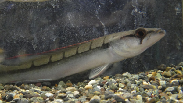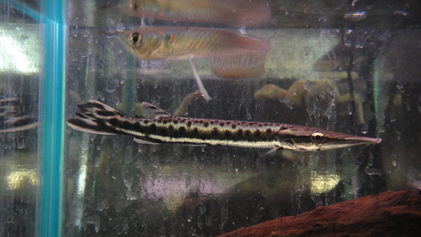 トーピードパイクの仲間で、入荷の少ない珍しい魚です。体側に入るネオングリーンのラインがとってもキレイです!今回とっても小さな個体ですが久しぶりに入荷しました!小さい分、価格は安くなっていますのでいかがですか?中型カラシンや牙カラシンの好きな方には特にオススメ!